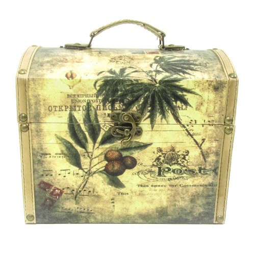 Maleta com estampa de folhagem tropical e frutos. Pode ser um lindo presente que além de útil é muito original