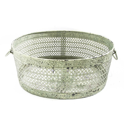 Cesto de ferro ferro vazado com espelho estampado com motivo de natureza na sua base. Ótima para decorar copas, cozinhas, terraços e espaços gourmet.