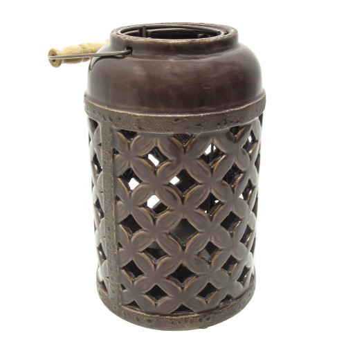 Lanterna de cerâmica esmaltada com alças de ferro e madeira. Usada com velas, vai deixar seu espaço mais acolhedor.